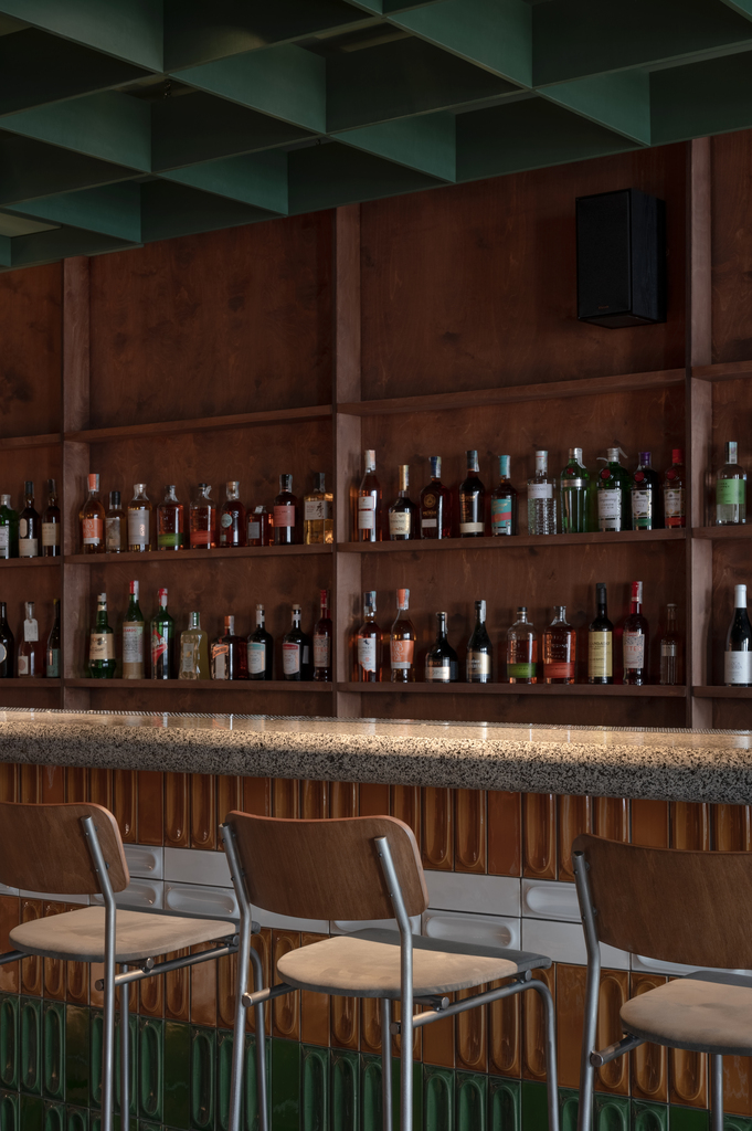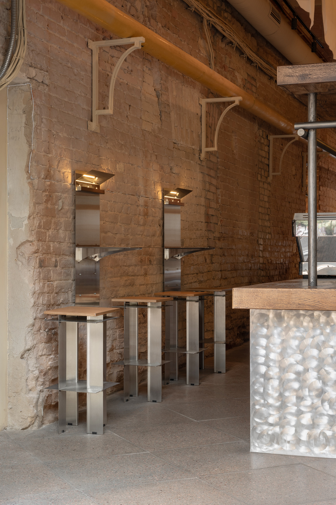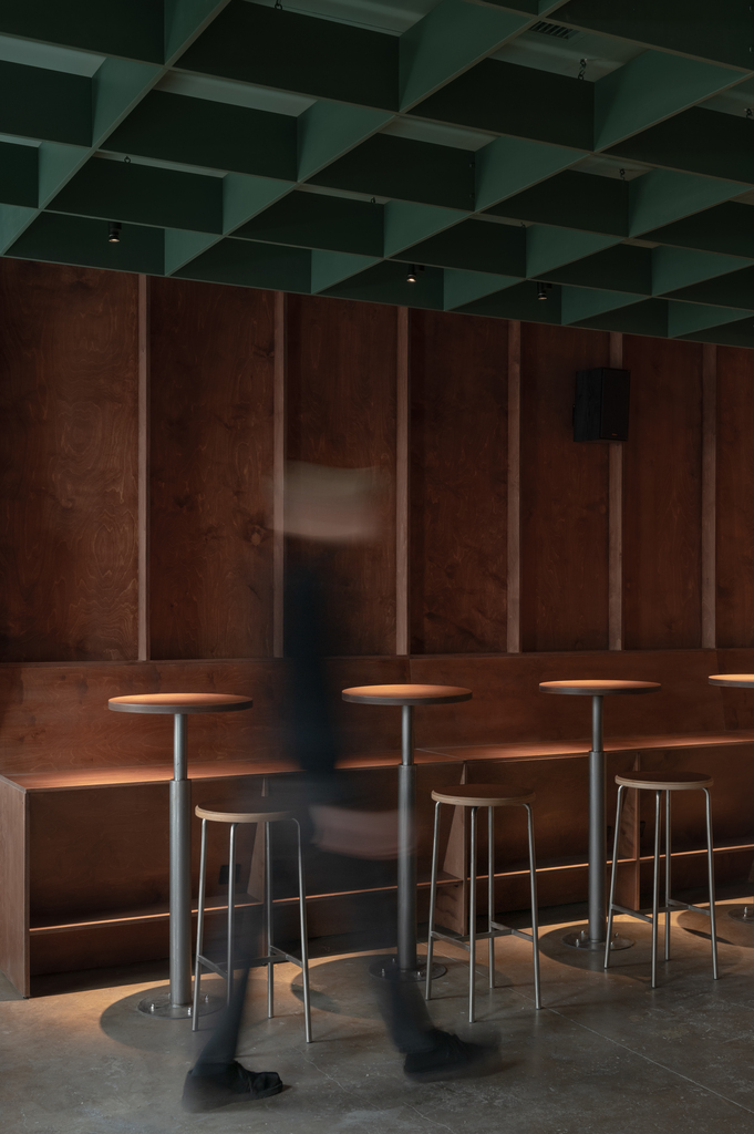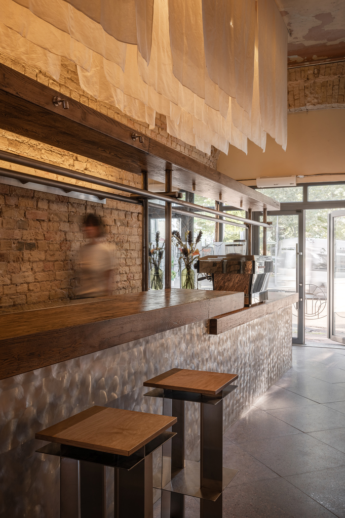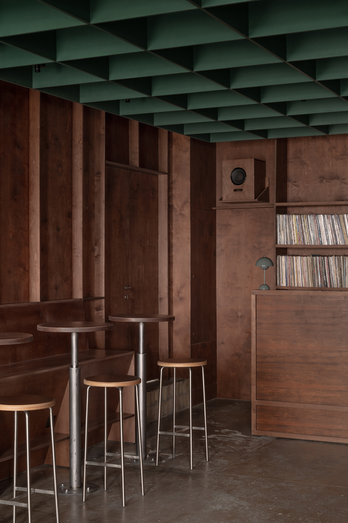 Bursa Bar розташований на першому поверсі готелю Bursa в історичному центрі Подолу. Його концепція — це втілення сучасної японської культури, зануреної у світ коктейлів і музики. У дизайні використані риси східного стилю: ортогональні лінії, чисті форми та вертикальний ритм. Головний матеріал — фанера, а ідея полягала в створенні приміщення, що нагадувало б музичний інструмент, де кожен відвідувач відчував би себе «всередині великої колонки».