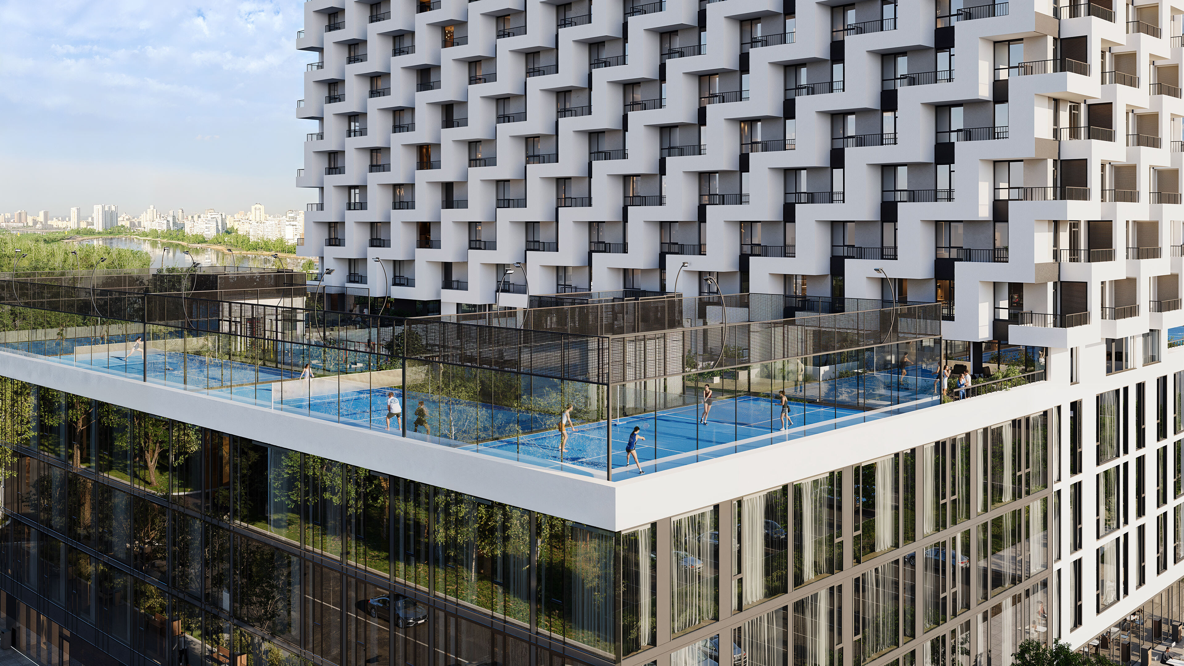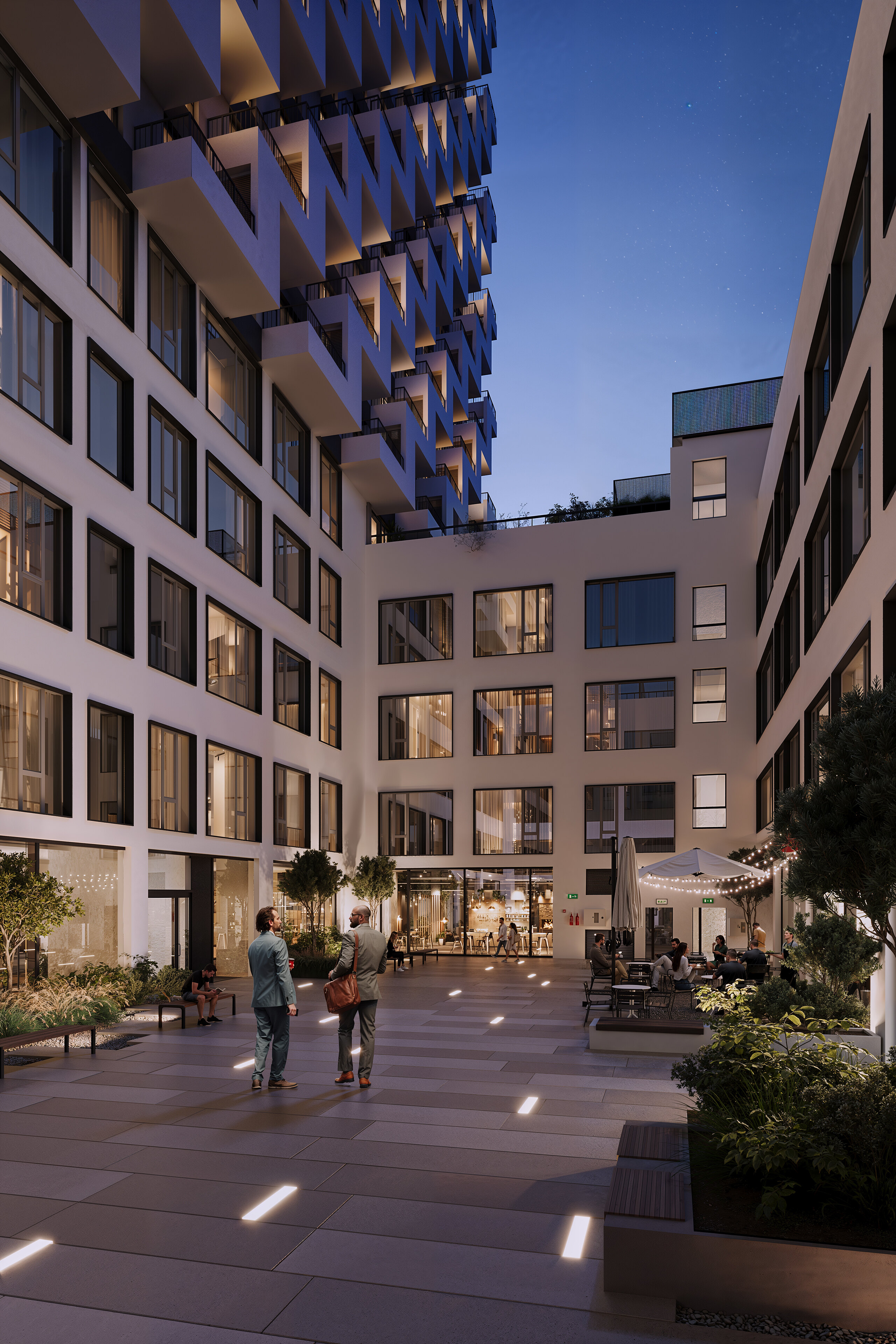 Усі зони загального користування спроєктовані навколо ідеї community building — створення місць для тривалого перебування, роботи та нетворкінгу. Завершення будівництва заплановане на початок 2027 року.
