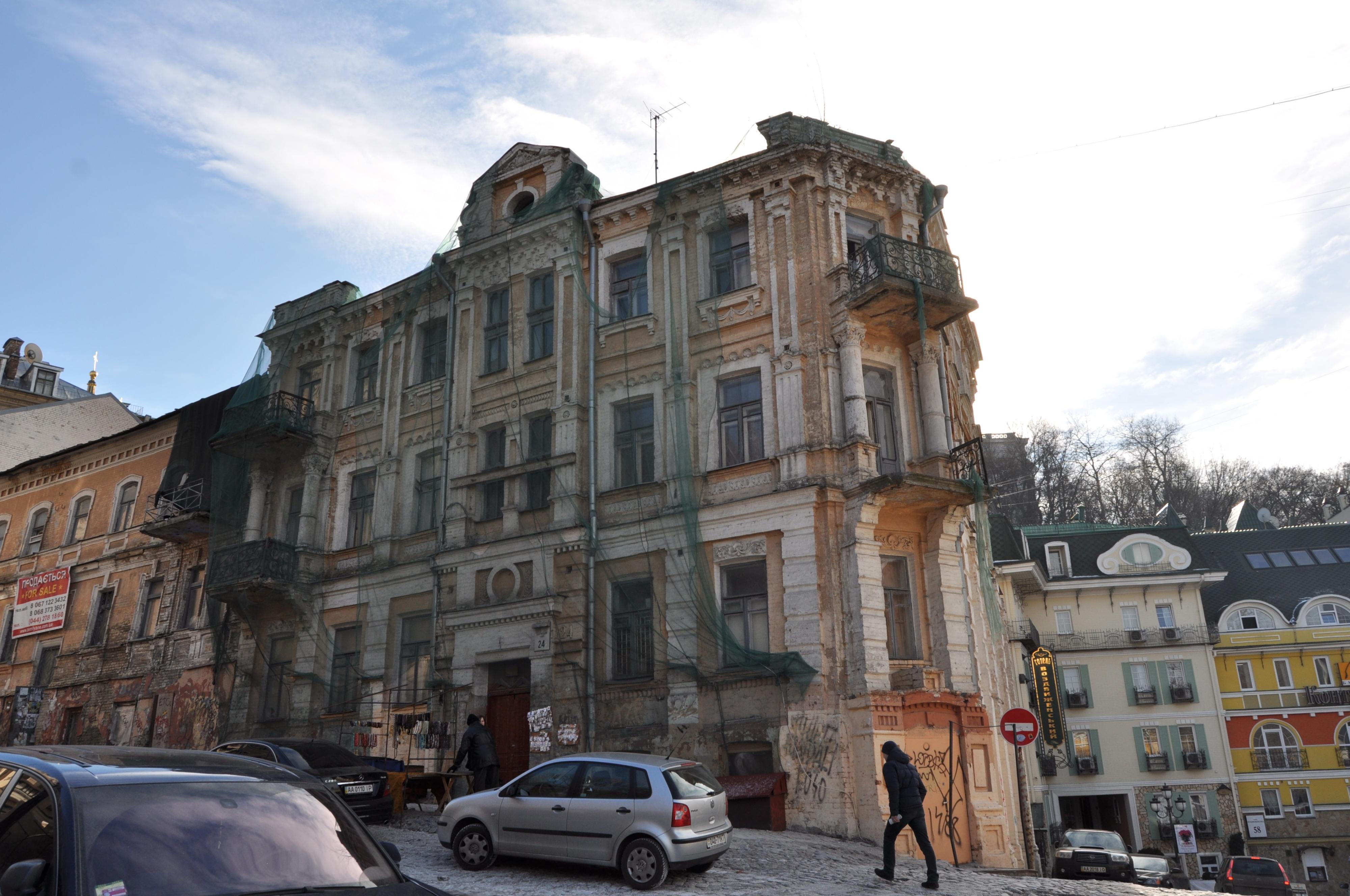 Будинок на Андріївському узвозі, 24, розташований на території Державного історико-архітектурного заповідника «Стародавній Київ» і в археологічно охоронній зоні. З одного боку споруда має чотири поверхи, з іншого — три. У 2015 році будівлю продали з умовою проведення реставрації у 2015–2016 роках, однак роботи так і не виконали, а об’єкт згодом перепродали. У вересні 2022 року будівлю почали незаконно розбирати: роботи проводили за будівельним банером без оприлюдненого паспорта об’єкта та інформації про дозвільні документи.