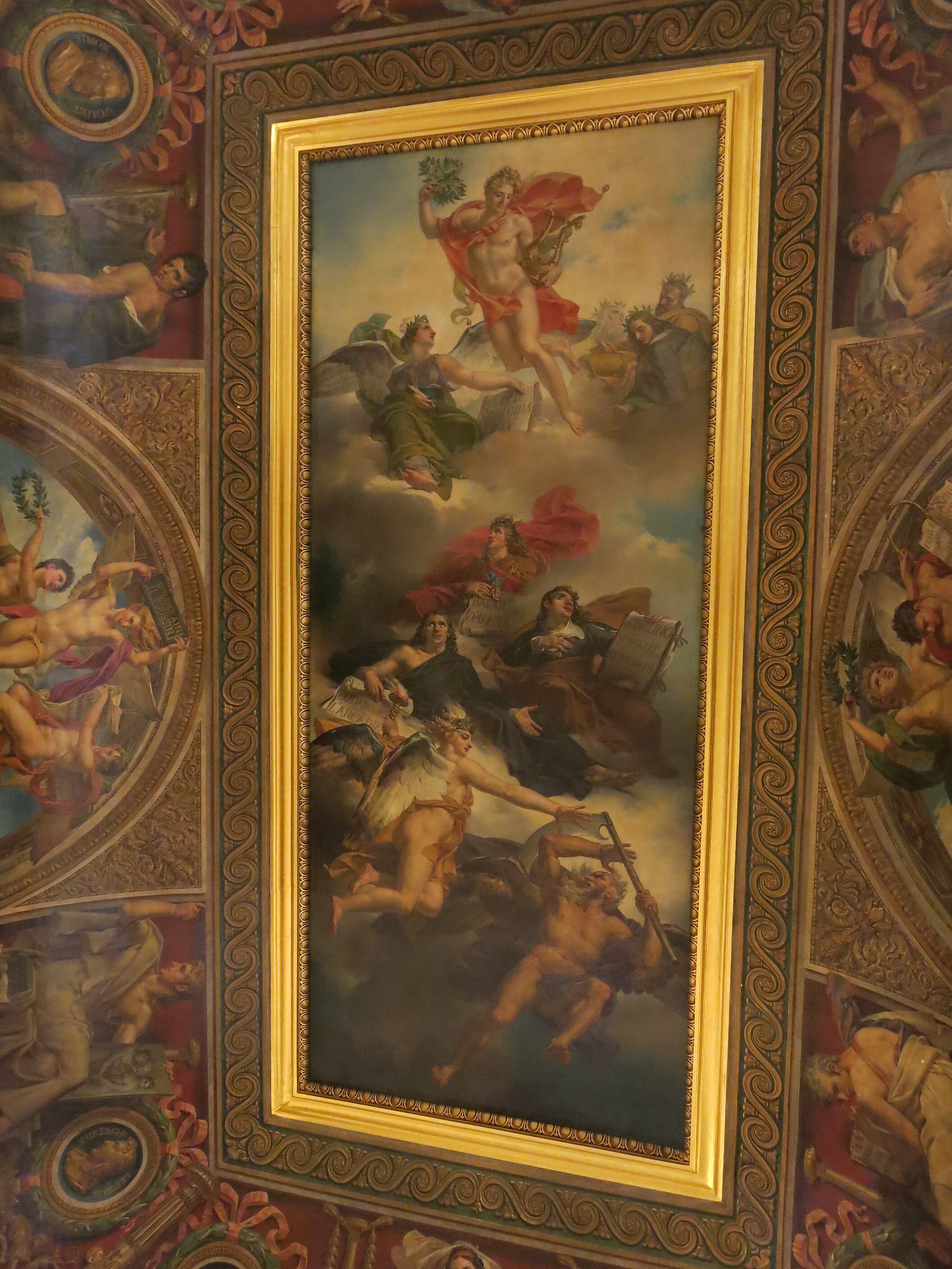 На фресці зображені французькі художники Ніколя Пуссен, Есташ Ле Сюр і Шарль Лебрен серед хмар та ангельських постатей.