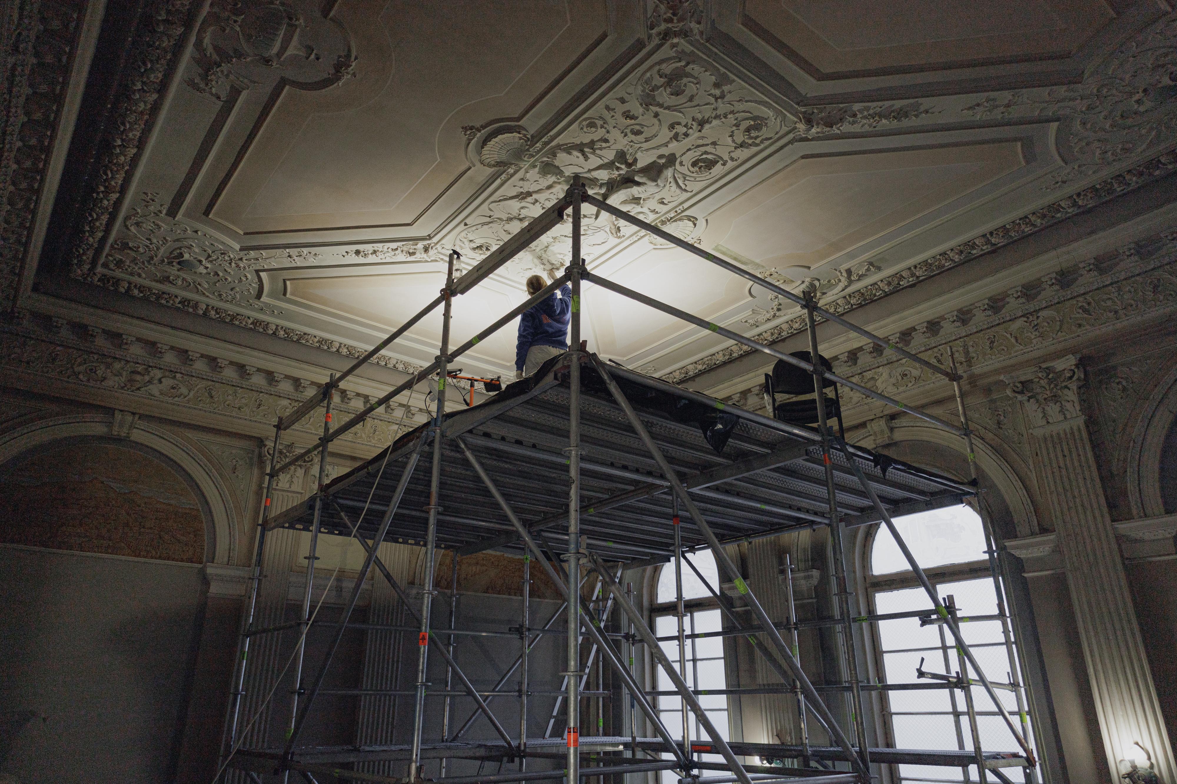 «Зараз тривають комплексні наукові дослідження, щоб виявити автентичні мистецькі декорації та дослідити їхню структуру. Ці роботи не впливають на конструктивний стан будівлі», — пояснює Василь Карпів, консерватор творів мистецтва та керівник реставраційної майстерні KARP Restorer.