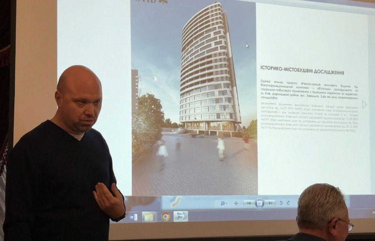 За словами Перова, архітектор проєкту Микола Віхарєв заперечив свою безпосередню участь у розробці, зазначивши, що лише представляв презентацію компанії Old Kyiv Buildings. Згідно з нею, старий дерев’яний будинок планують надбудувати 23 поверхами й облаштувати підземний паркінг. Забудовники називають ці роботи «реконструкцією» і заперечують факт нового будівництва чи зносу, наголошує активіст.