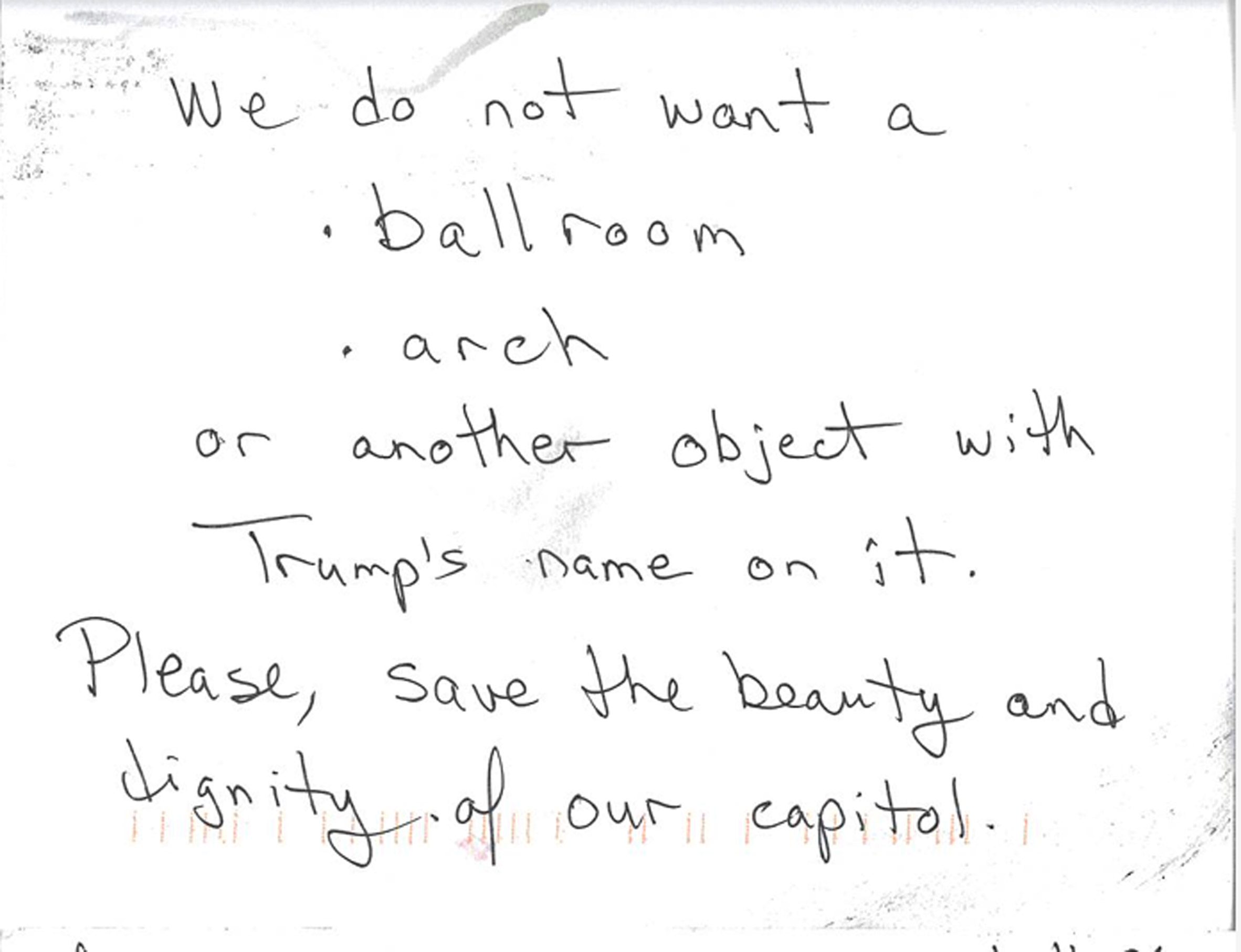 Комісія оприлюднила понад 10 тисяч сторінок листів і звернень, серед яких є навіть рукописні повідомлення. У багатьох із них люди критикують масштаб будівлі, її зовнішній вигляд, високу вартість і саму ідею перебудови історичної частини резиденції. Деякі автори листів пишуть, що їх глибоко засмучує знищення східного крила, а новий зал називають надто помпезним.
