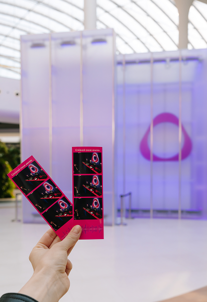Усередині облаштована продуктова зона з продажем девайсів. Окрім власного треку, можна зробити гравіювання на пристрої. Потрібно лише обрати картинку — і за кілька хвилин на корпусі зʼявиться відповідний малюнок. А ще куб має камеру для несподіваних фото, якими потім можна поділитися в соцмережах.
