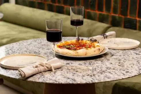 Для замовлення доступні 12 варіантів піци з начинками. Серед них — піца “Київська Русь” з сомом та бобами. Також відвідувачам пропонують основні страви: смажену картоплю, деруни, салати з сезонними продуктами, супи, голубці, рибні та м'ясні котлети тощо. Крім цього, можна замовити цільнозерновий хліб, десерти та напої.