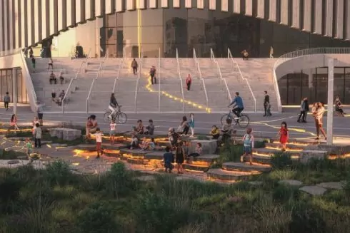 - площа біля DR Hall стане урбаністичним басейном із ярусними лавами та плавучими островами