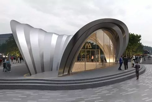 Кожен павільйон буде розміщуватись на нових громадських площах як швидко впізнаваний орієнтир, що вказує на доступ до міського метрополітену.