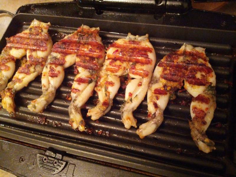 Лягушек готовят в двух вариантах: frog&chips и frog&grill. Первый - жаренные лапки во фритюре (темпура). Порция состоит из пары лап, они подаются с картошкой пай (натертая на мелкую терку свежая картошка во фритюре) с томатным соусом или соусом айоли на выбор.
