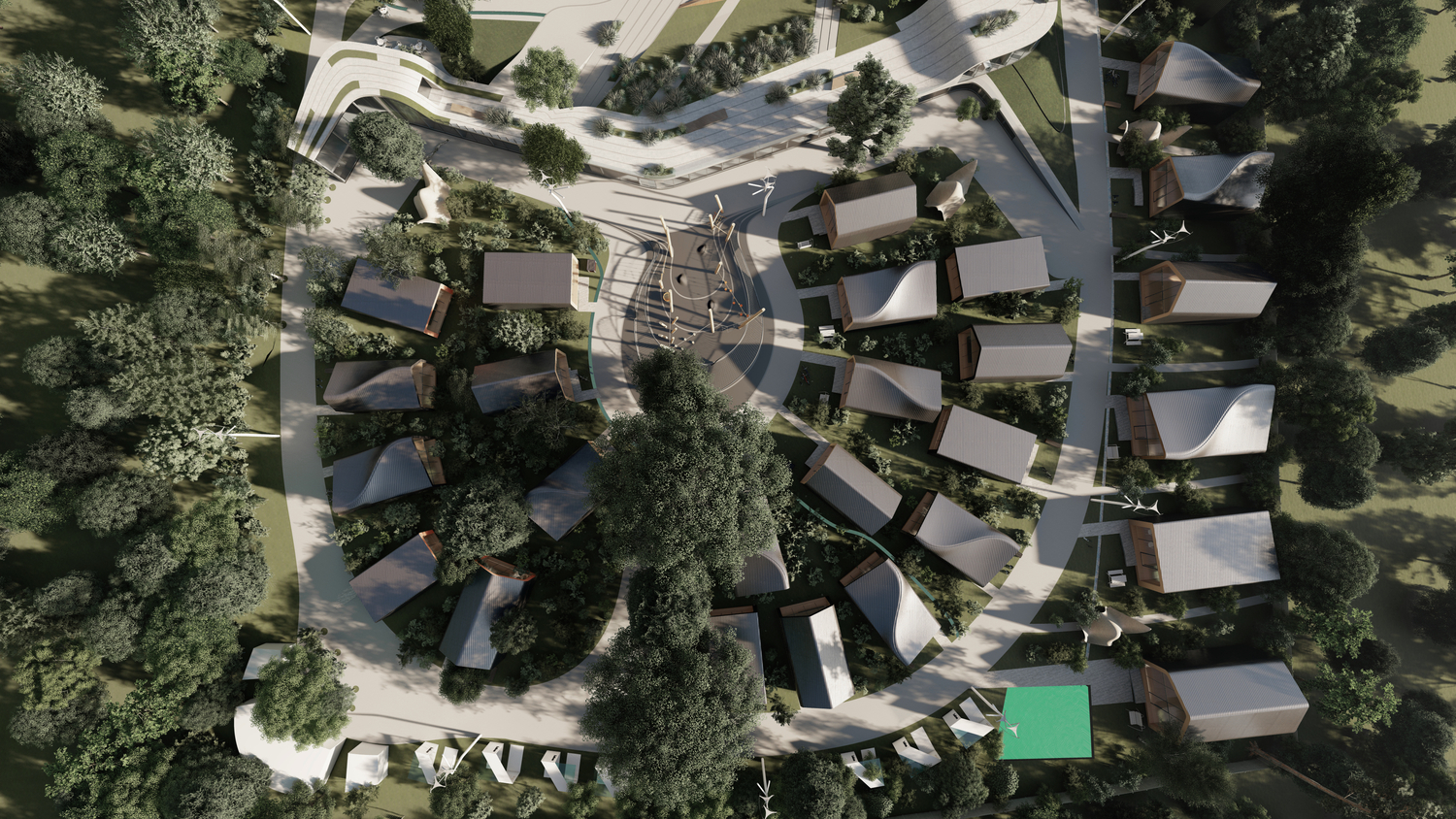 «Основна задача проєкту – зберегти ландшафт. Будівлі будуть не вкопаними в землю, а добудованими до пагорбів таким чином, що підвищення природного рельєфу поступово перейде у зелений дах. Замість капітальних фундаментів обрали гвинтові палі теж», – додали в Aranchii Architects.
