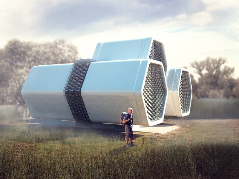Модульні будинки являють собою житлові будови, що складаються з трьох шестикутних юнітів, які нагадують осередки бджолиних сот. Вони будуть розкидані по території Чорнобильської зони, за винятком забрудненої території.
