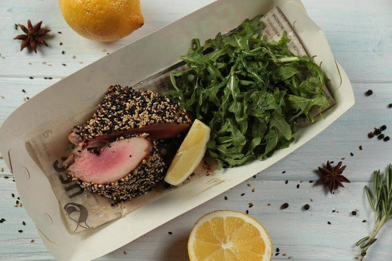 Цены: хамон из тунца – 120 грн, бургеры – 80 грн, овощи гриль – 70 грн, голец с овощной лапшой – 190 грн, тунец в кунжуте – 190грн, креветки на гриле – 100 грн