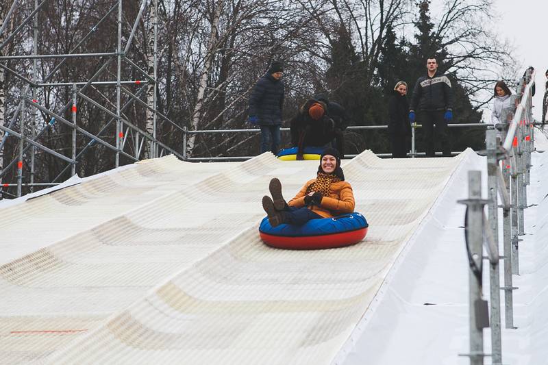 На території фестивалю працюють три дорослих і три дитячих гірки висотою 70 і 30 метрів. Спеціальне покриття гірок дозволяє кататися навіть якщо немає снігу.