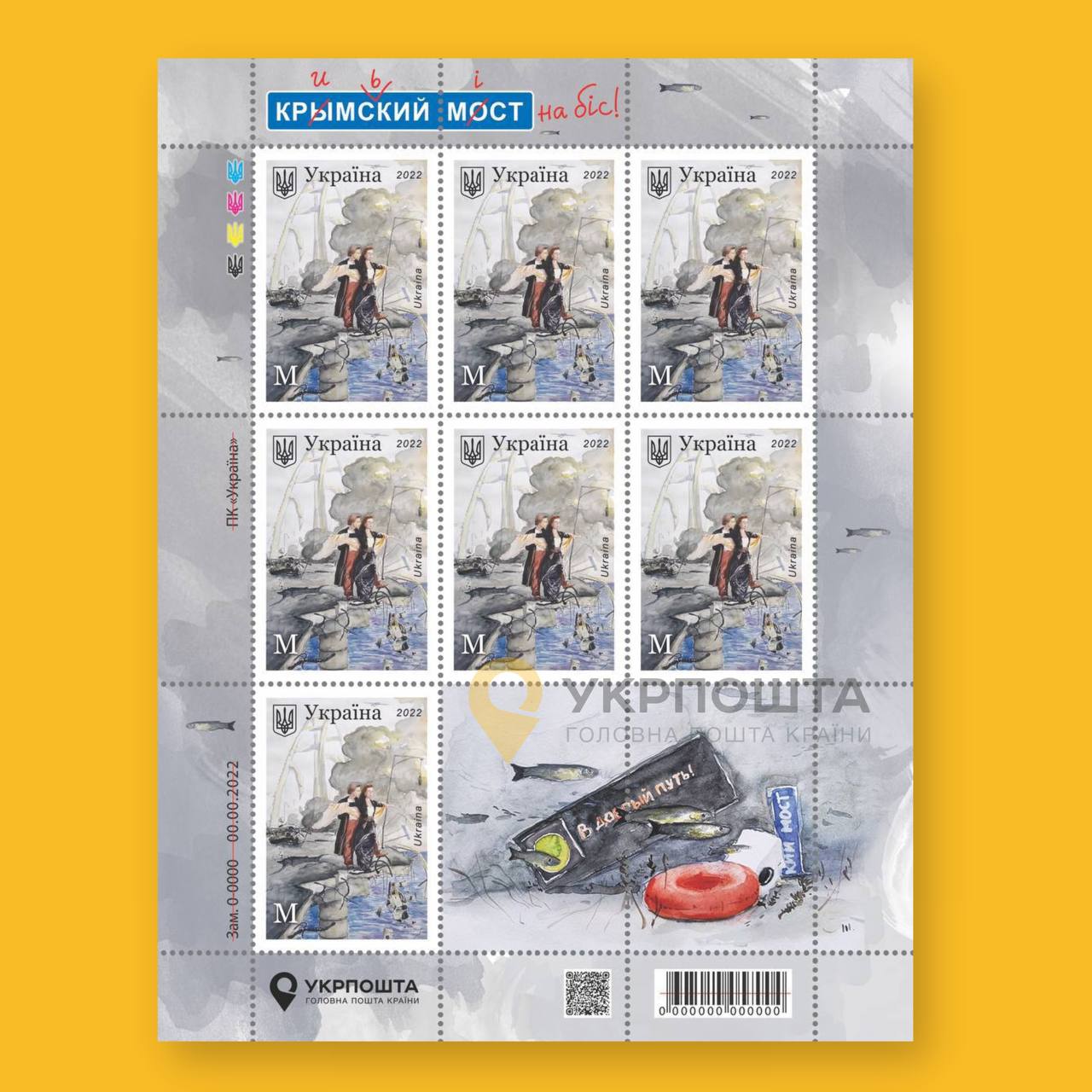 “Укрпошта” запустила передзамовлення на марку зі зруйнованим Кримським мостом. Поштовий набір “Кримський міст на біс!” включає марковий аркуш, художній конверт та листівку.