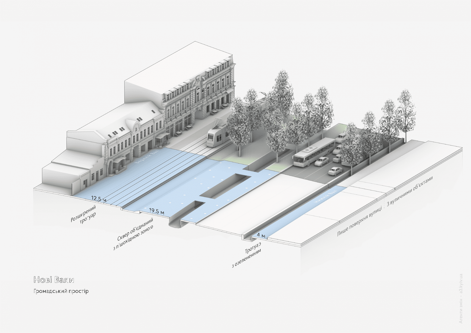 Команда архітекторів і дизайнерів «Агенти змін» представила проєкт реконструкції Верхнього і Нижнього Валів. Зокрема, планують збільшити мобільність на вулицях і провести озеленення територій.