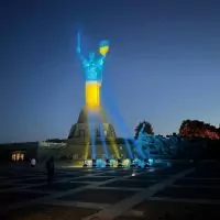 Дивіться, як у Києві підсвітили Батьківщину-Матір у кольори прапорів США та України