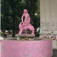 Самсон у рожевому кольорі: вандали пофарбували пам'ятник на Подолі