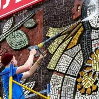 Фото: активісти відмили історичну мозаїку на Березняках. Це вперше за 50 років