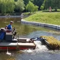 У парку "Відрадний" розчистили озеро за допомогою машини-амфібії