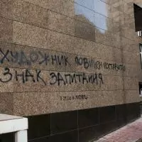 На київських будинках з'явилися дивні написи. Це промо виставки в NAMU від Banda