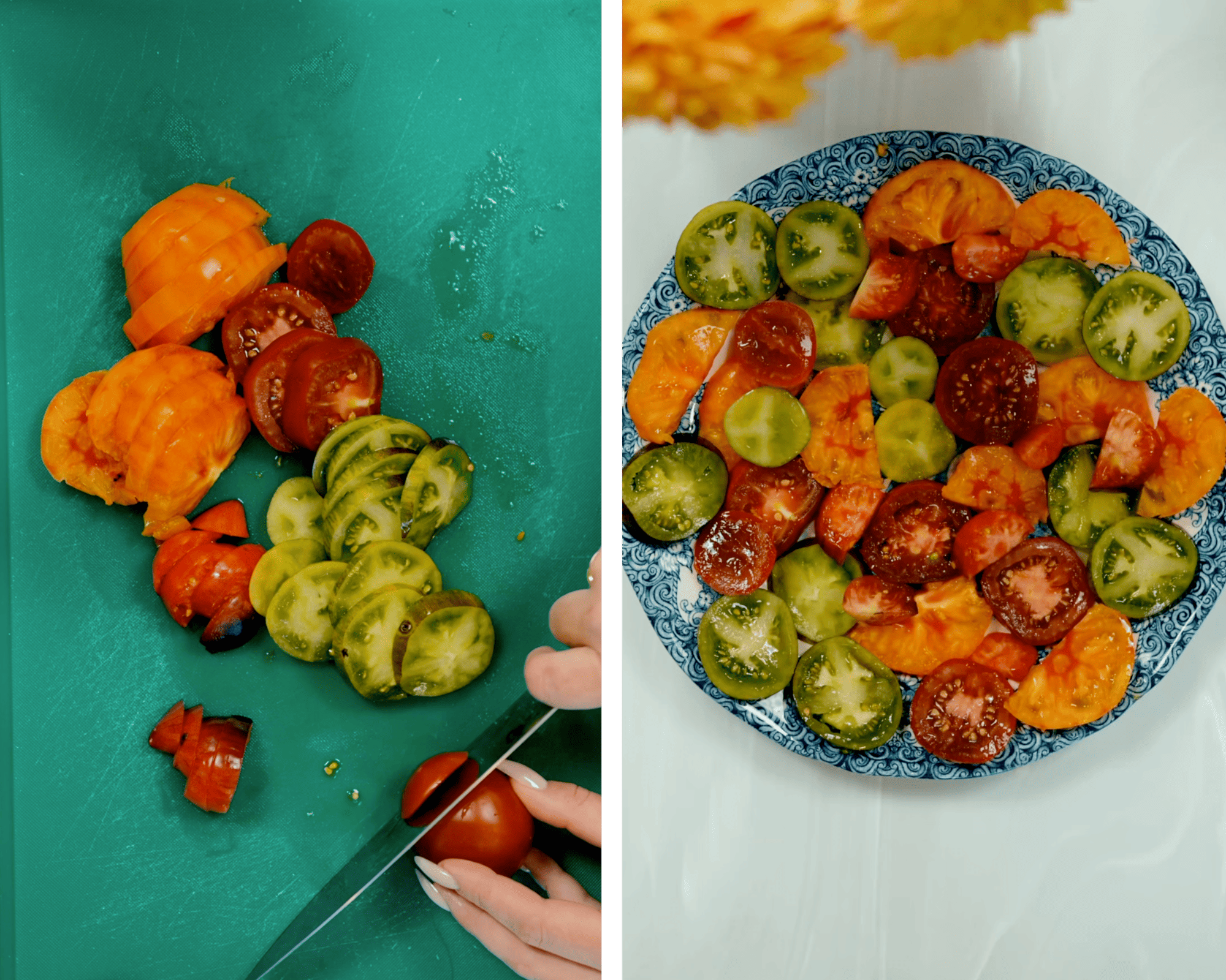 1. Томати нарізати кільцями та викласти на велике пласке блюдо.