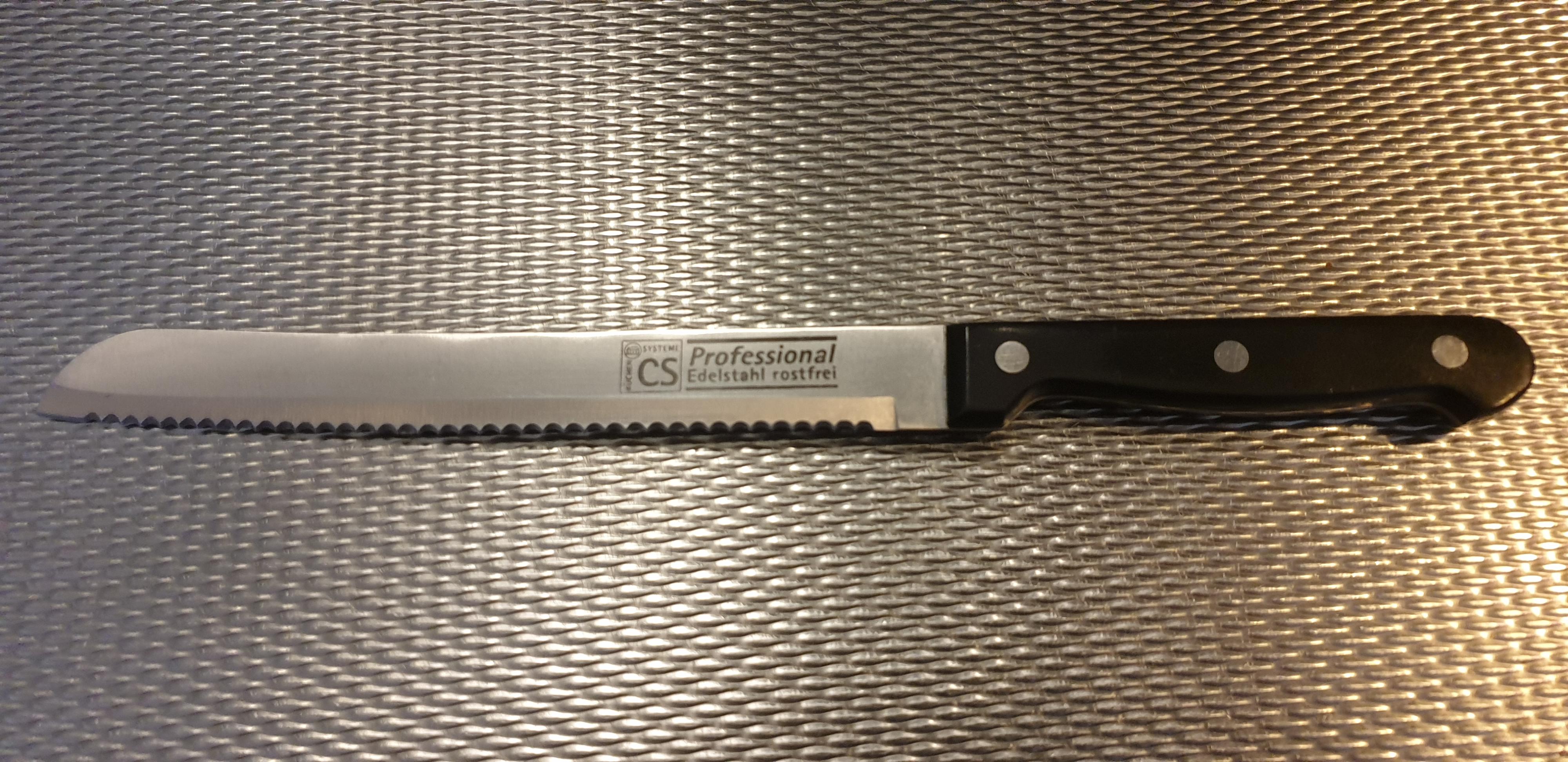 4. Хлібний ніж. Зубчасте лезо, яке проходить через скоринку не здавлюючи мʼякуш. Такі ножі також годяться для нарізки мʼяких фруктів із жорсткою шкіркою — наприклад, помідорів.