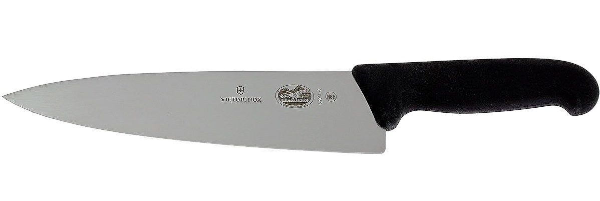 1. Шеф-ніж. Базовий і найважливіший інструмент на професійній та домашній кухні. Лезо 18-25 сантиметрів дає контроль і свободу рухів. Це ніж, яким виконують більшість операцій — шинкування, подрібнення, рубання.