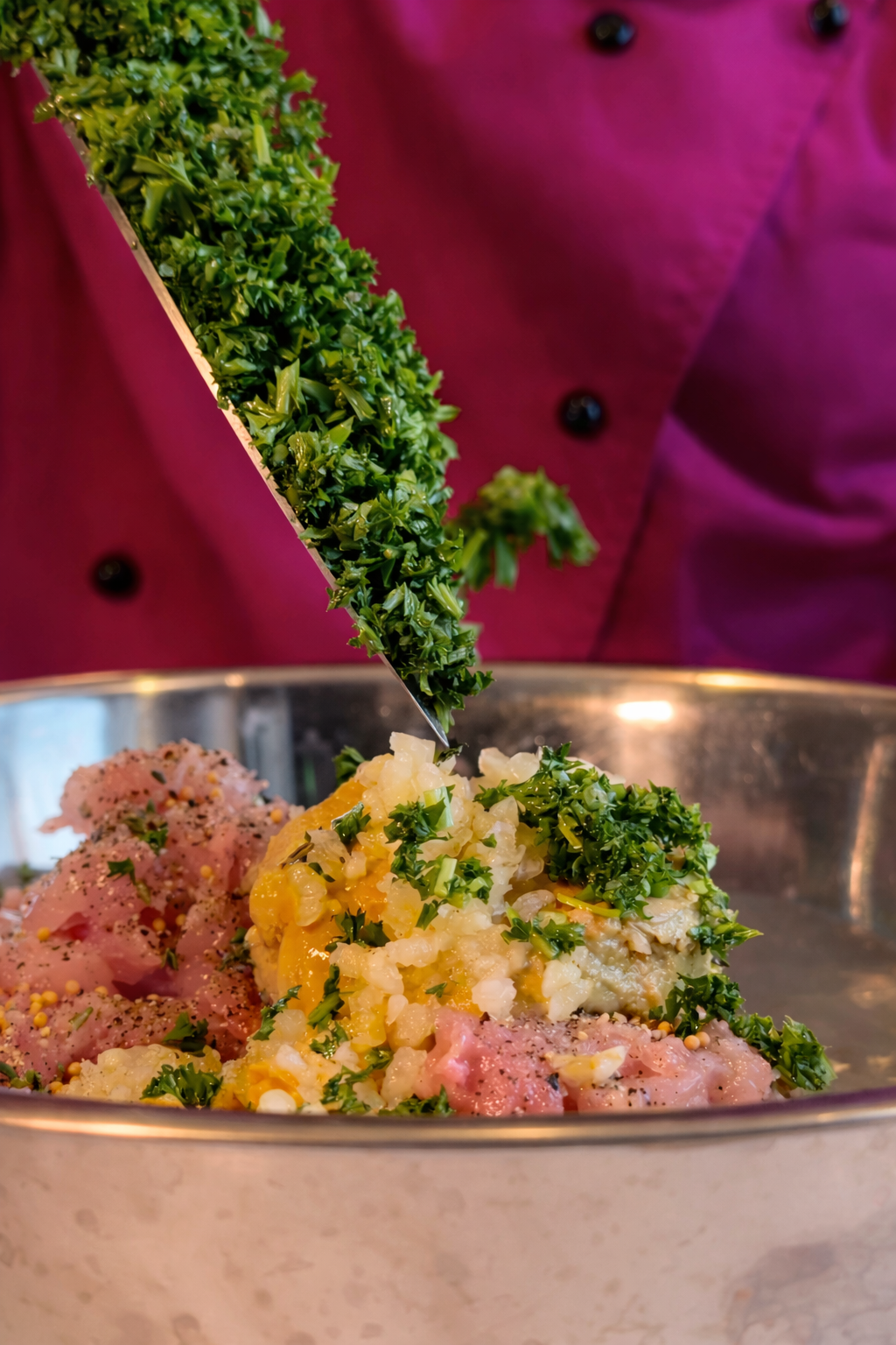 Ще одна важлива річ для Pâté Berrichon — поєднання м’яса. Традиційно беруть кілька видів одночасно: більш жирну свинину, ніжну телятину, іноді кролика або інше біле м’ясо. Це створює складніший смак, ніж якби начинка була однорідною. Додавання трав, гірчиці й невеликої кількості алкоголю позначається на страві дуже делікатно — не перебиває, а лише підкреслює смак.