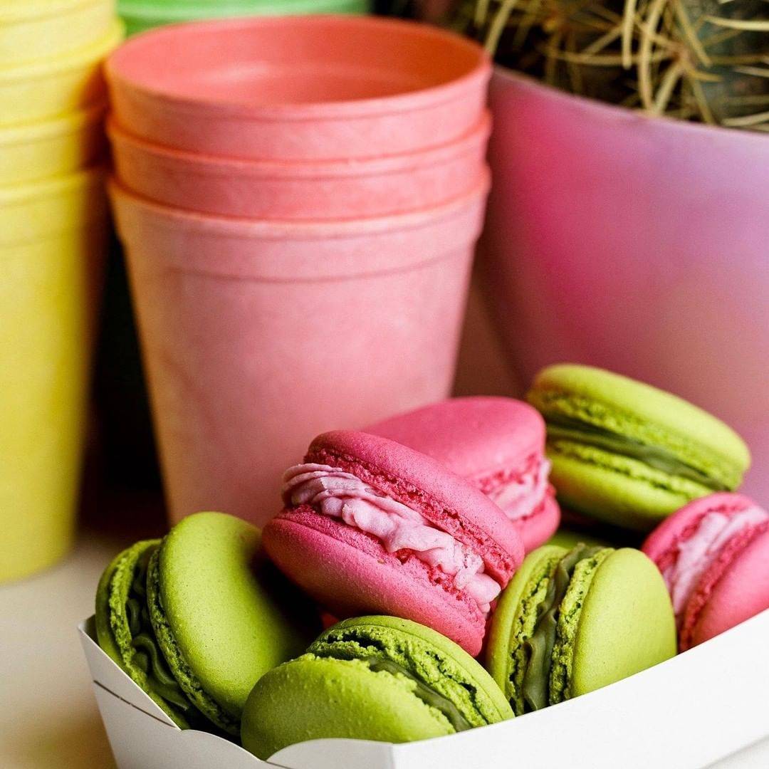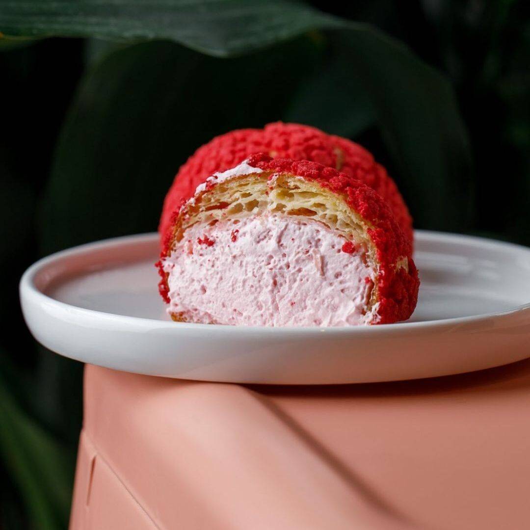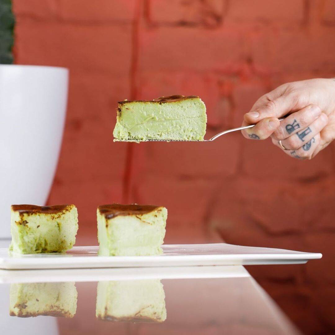 Из десертов предлагают пирожные Шу с розовой матчей, баскский чизкейк, мафины, макароны и прочее.
