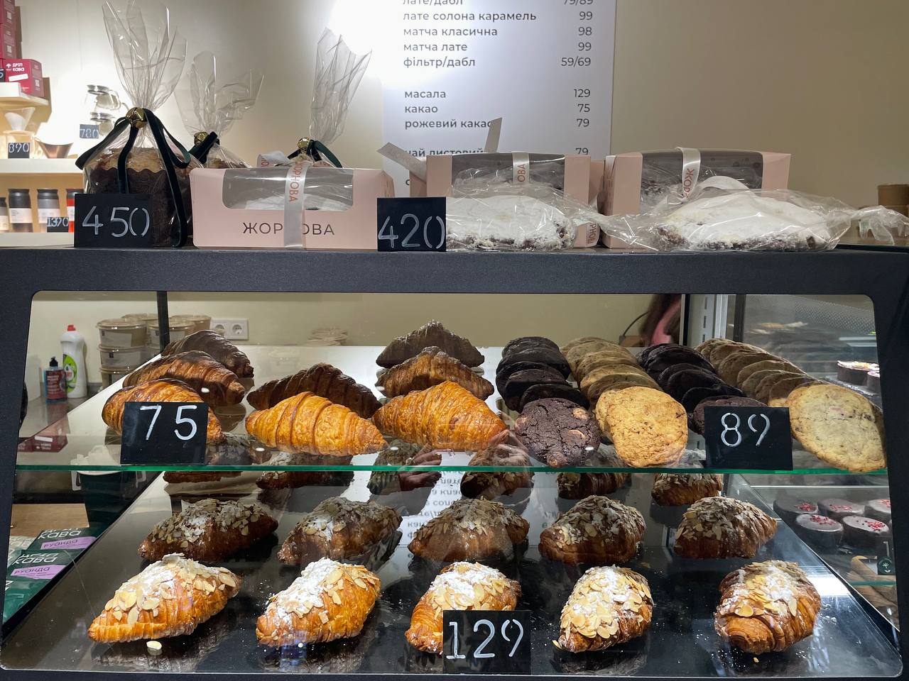 Цены: «три молока» – 99 гривен, английский чизкейк – 129 гривен.