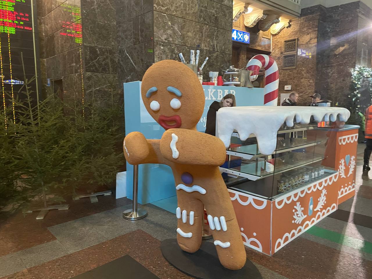 Возле витрины – огромный «имбирный пряник», а слева фотозона «Железное Рождество». Тут можно сделать фото и заказать любимый десерт.