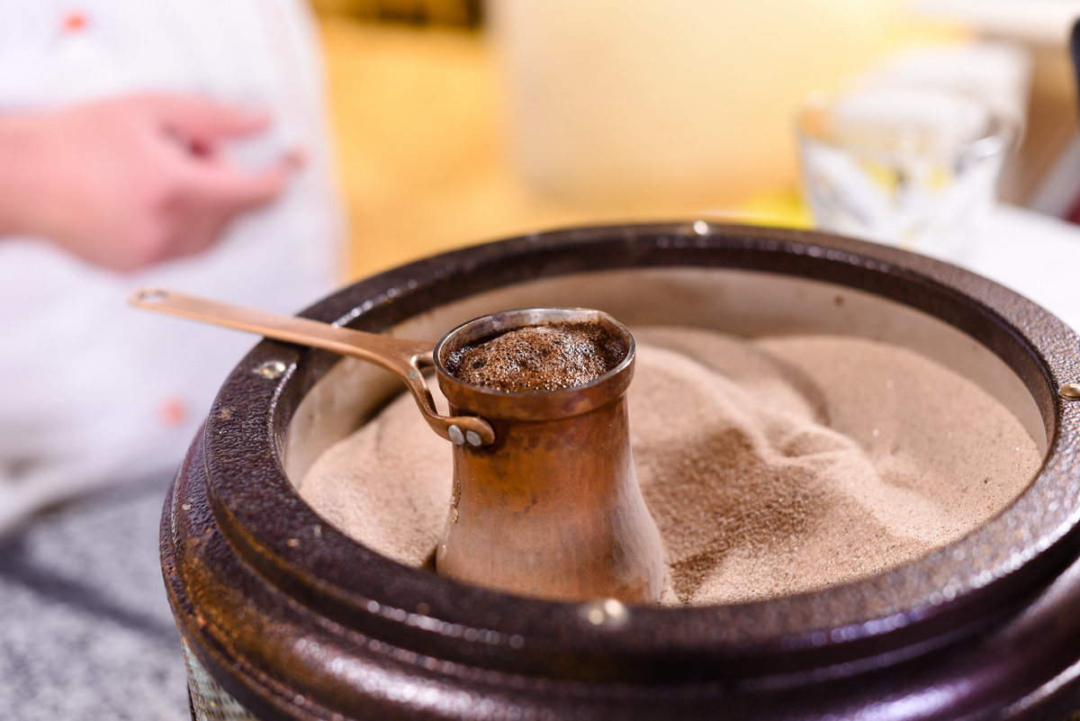Шаг 4. Дальше процесс прост: засыпаешь кофе в джезву и заливаешь холодной водой. Ставишь и огонь или песок и ждешь, пока произойдет магия.