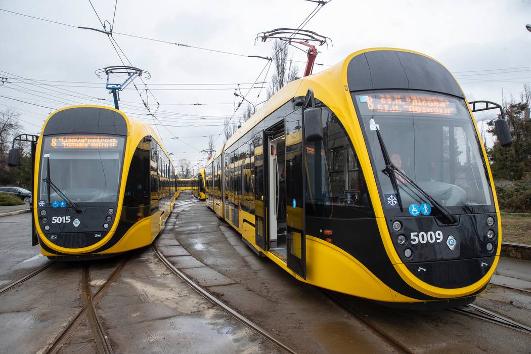 С Лесной на Позняки начали курсировать новые трамваи украинского производства: фото
