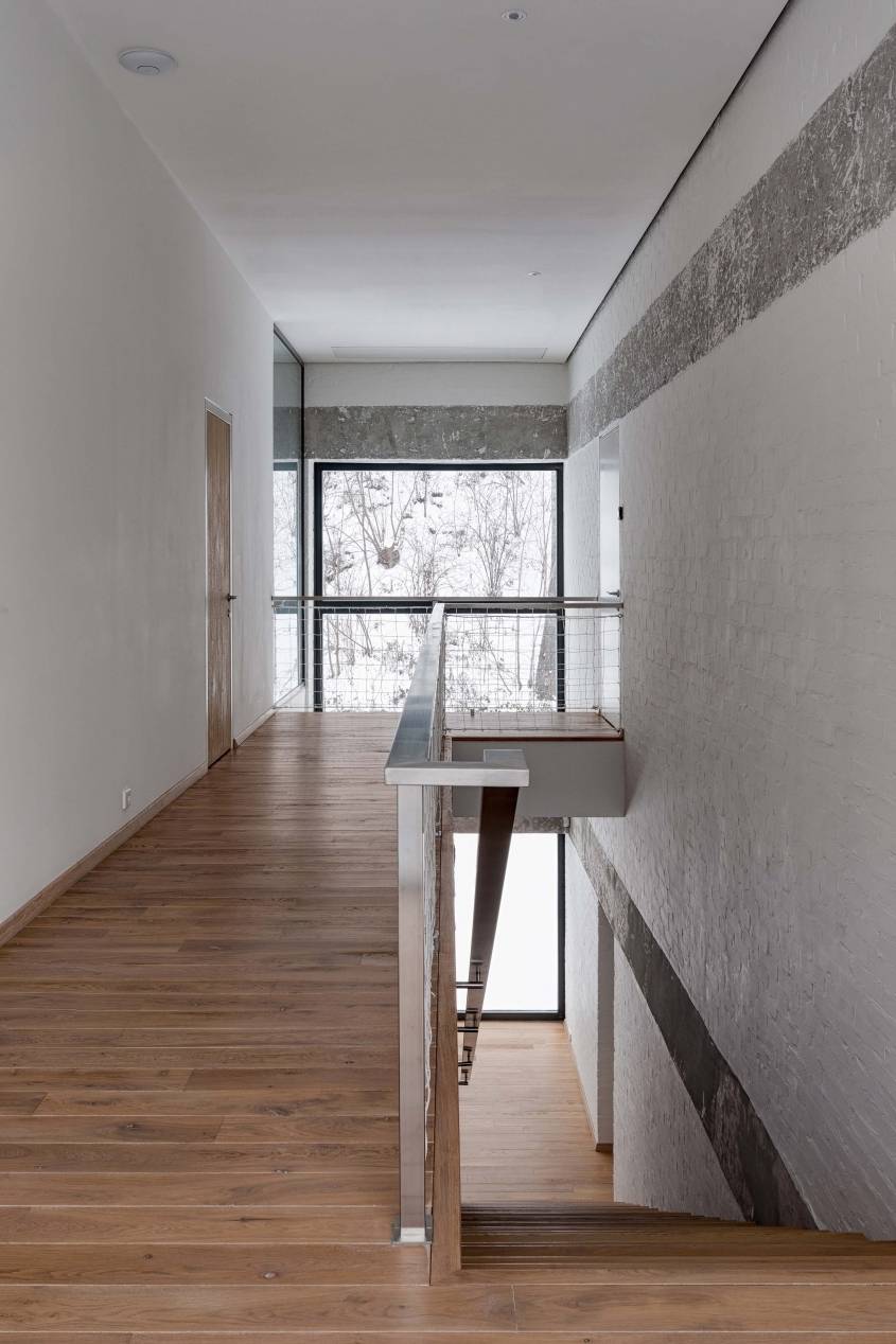 На втором этаже расположились детские и главная спальни, их разделяет лестничный холл с видом на город.