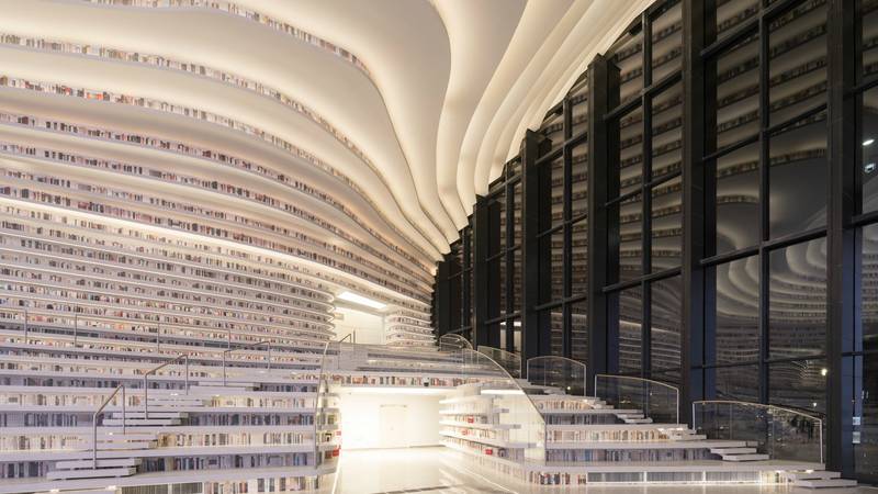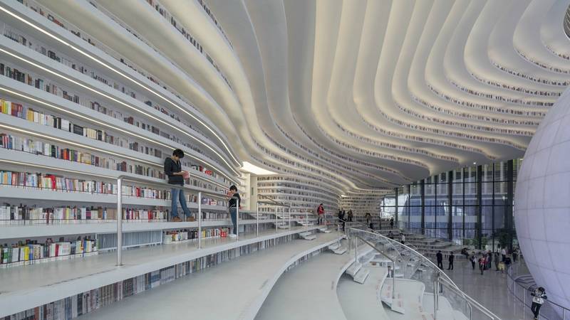 Самым популярным стал проект библиотеки в китайском городе Тяньцзинь. Его совместно разработали MVRDV и Tianjin Urban Planning and Design Institute. Это культурный центр площадью более 33 тыс. кв. м. Здесь могут поместиться около 1,2 млн книг, а здание было построено в рекордные сроки – всего за 3 года.