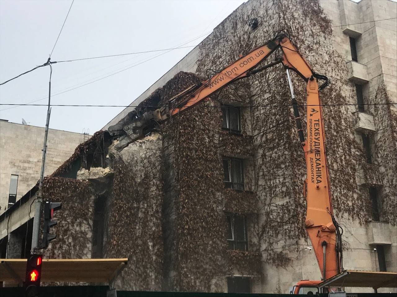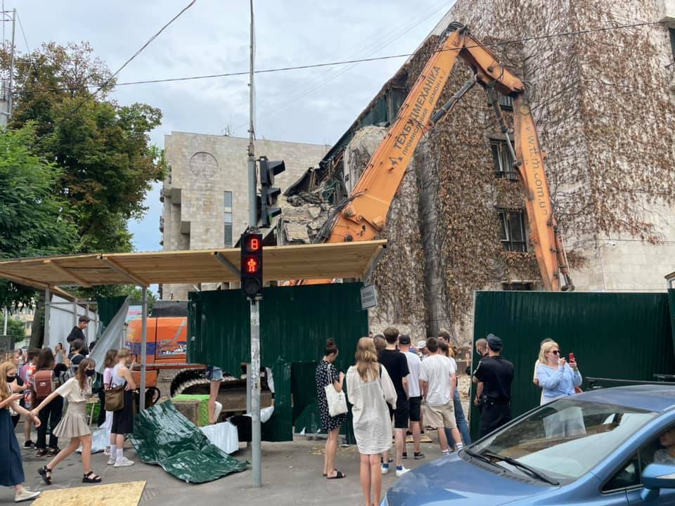 В ночь на 12 июля к зданию пригнали тяжелую строительную технику. Днем техника начала демонтировать здание. На место событий вызвали полицию и начали открывать уголовное производство, поскольку градостроительные условия и ограничения незаконны, а права на строительство у владельца нет. По состоянию на 15:00 12 июля застройщик успел разрушить нижнюю часть атриума, а активисты снесли строительный забор и заблокировали технику.