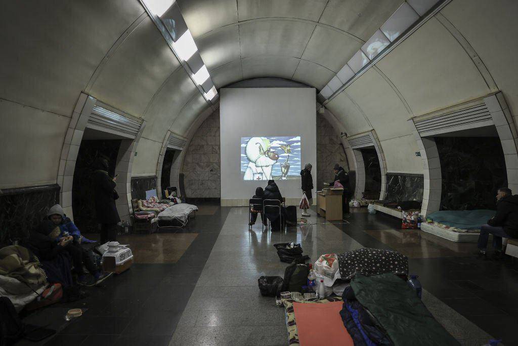 С первого дня в подземелье забурлила новая жизнь – люди там спят, отдыхают, завтракают, детям показывают мультики на большом экране. Надувные матрасы и карематы, туристические палатки, раскладные стульчики и столы – киевляне обживают вестибюли метро и вагоны по-домашнему.