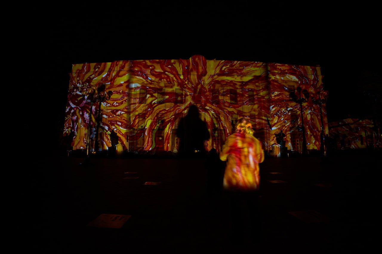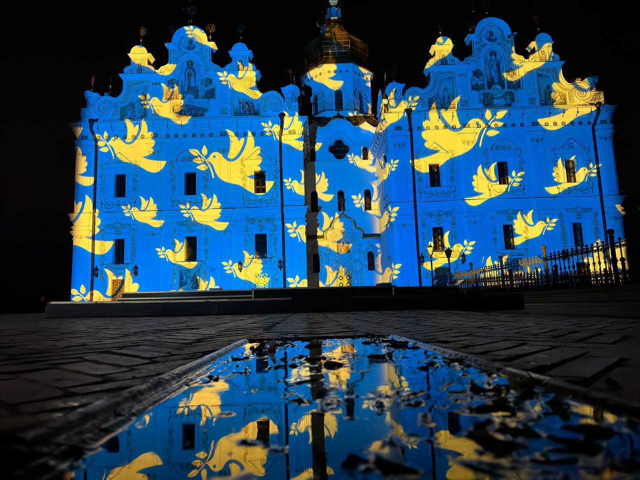 Мы уже писали, как он подсветил Оперный театр, Главпочтамт и Охматдет. В воскресенье 26 февраля Хофштеттер создал художественные проекции на зданиях Верховной Рады и Успенского собора Киево-Печерской лавры.