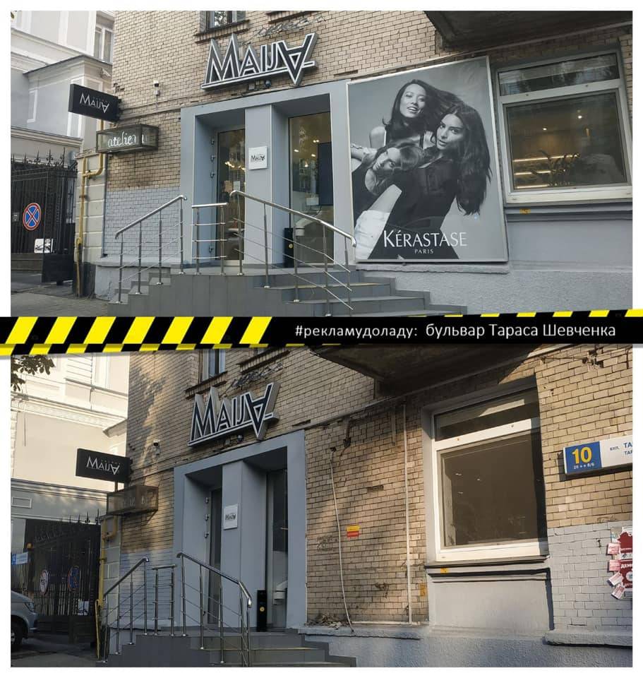 Рекламные вывески демонтировали с фасадов домов на бульваре Тараса Шевченко: 8/26, 6, 10 и 26/4.