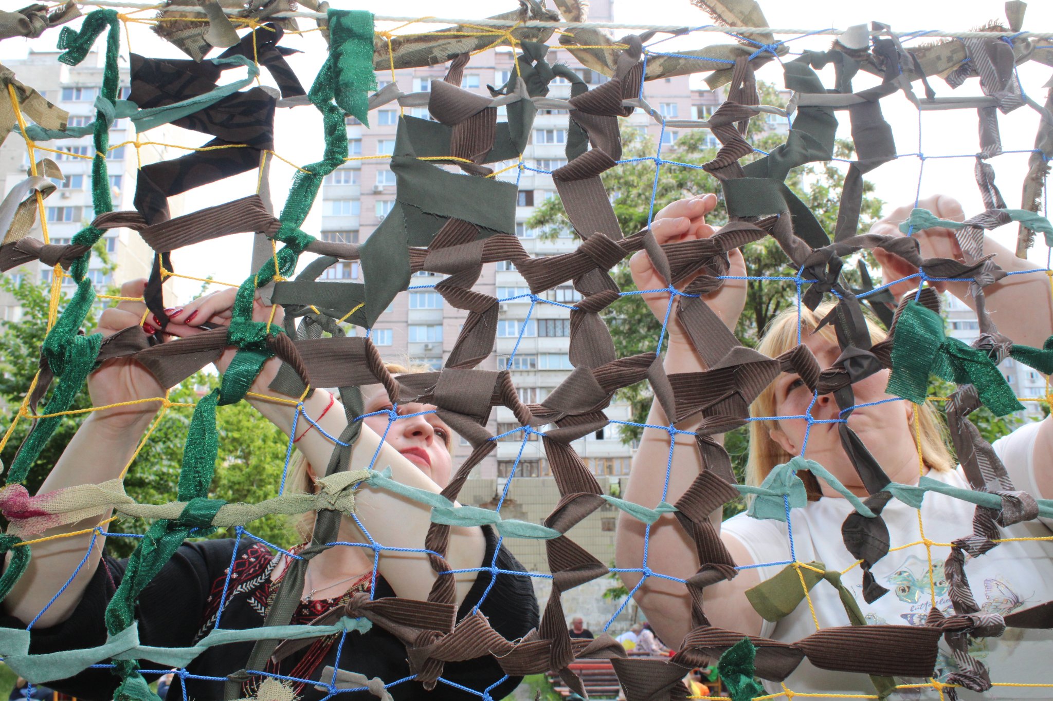 Открытие сквера прошло 2 июня. Во время него дети создавали рисунки и обереги для украинских защитников на передовой, а взрослые посетители присоединились к плетению маскировочных сеток.