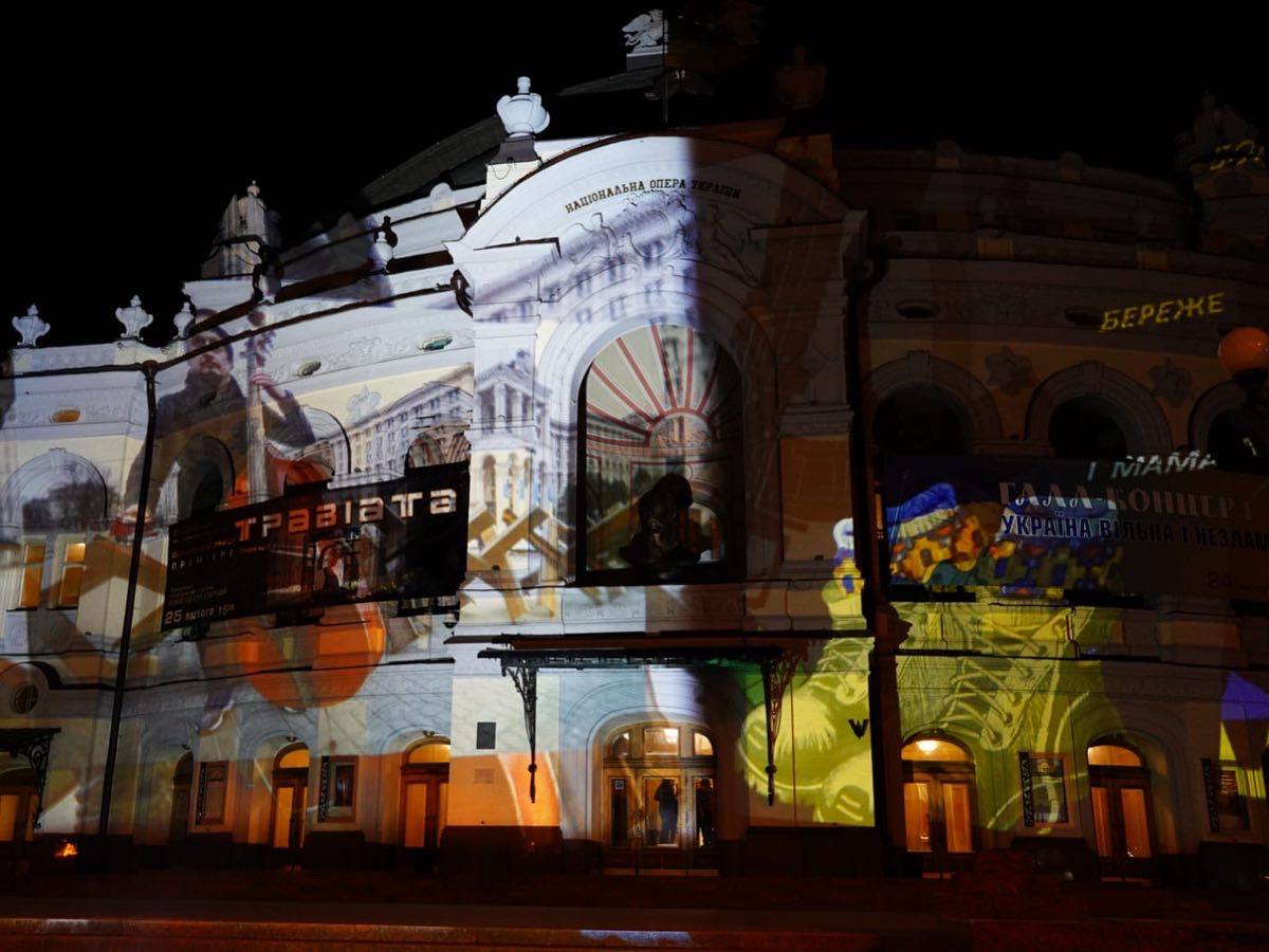 Фото: В Киеве подсветили Оперный театр, Главпочтамт и Охматдет
