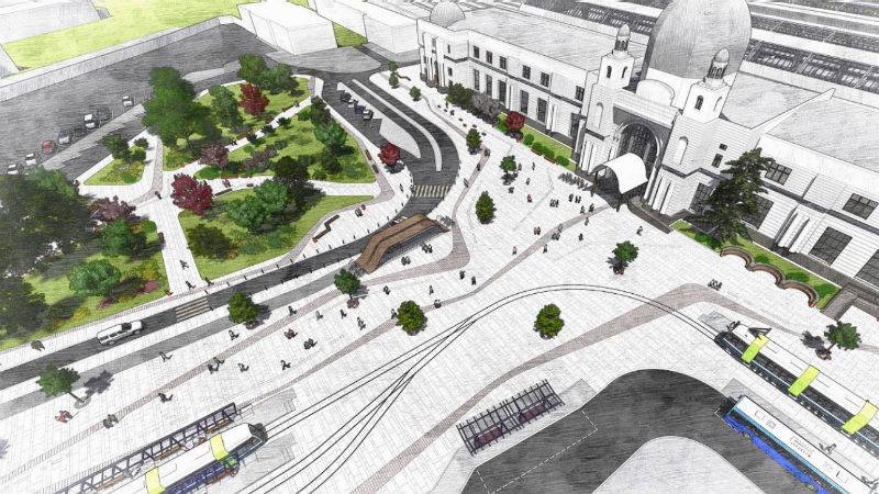 Должно стать: новая трамвайная остановка, новая схема движения общественного транспорта, расширенный и обустроенный сквер возле вокзала