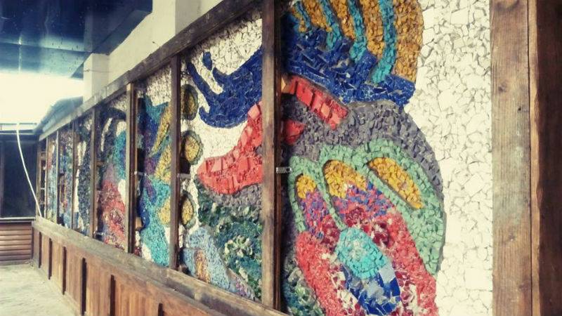 Что возмутило Facebook: вывеска с логотипом ресторана закрыла историческую мозаику “Ветер” Аллы Горской. На это обратила внимание искусствовед Евгения Моляр — ее возмущенный пост собрал 140 шеров и был растиражирован СМИ.