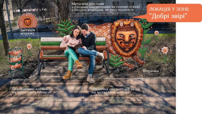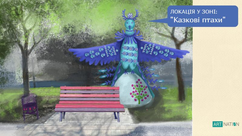На бульваре установят 16 скульптур сказочных существ, придуманных художницей, другие стилизованные элементы уличного декора и мебели, а также монумент Примаченко.