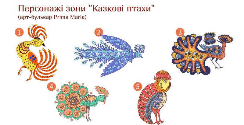 Персонажи зоны “Сказочные птицы” будут выложены из зеркальной мозаики.