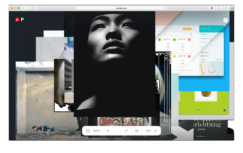 В отличие от традиционных inspiration scroll сайтов pixride скролит вместо вас. Нужно выбрать категорию и на странице начнут возникать картинки.
