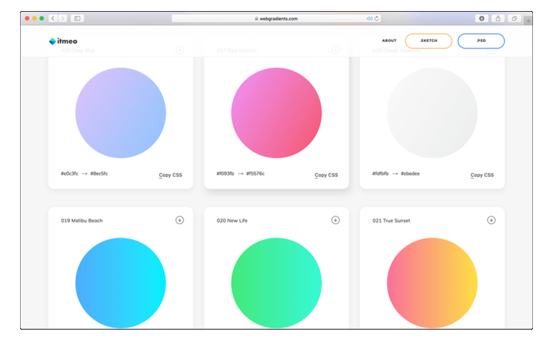 Коллекция веб-градиентов с очень классными цветами.
