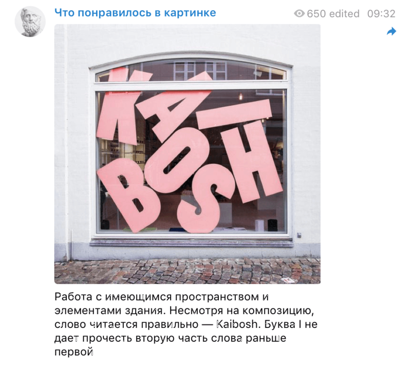 Каждый день автор кидает в telegram-канале картинки, которые ему понравились, и объясняет, почему именно. Переоценить пользу от такого упражнения для тех, кто развивается в направлении визуального мышления и творчества, сложно.