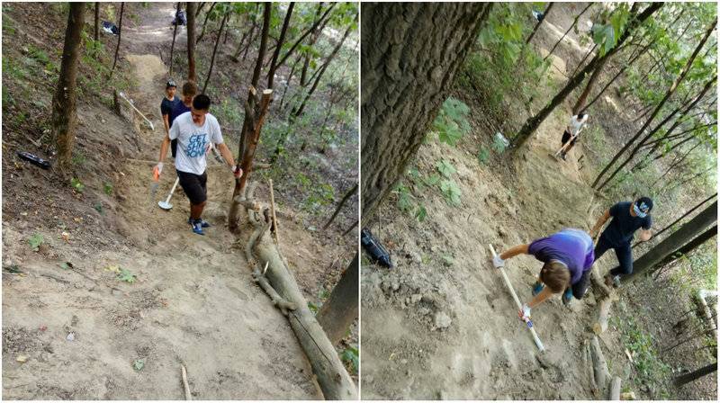 “Мы с друзьями копали там трассы и катались еще с 2009 года. Жили рядом, убирали это место, расчищали дорожки и делали трамплины для своих спусков. В этом году местная власть обратила на нас внимание и разрешила создать официальную трассу для экстремальных дисциплин”, — рассказывает Сергей Завальный, один из волонтеров и основатель велошколы Follow Me.