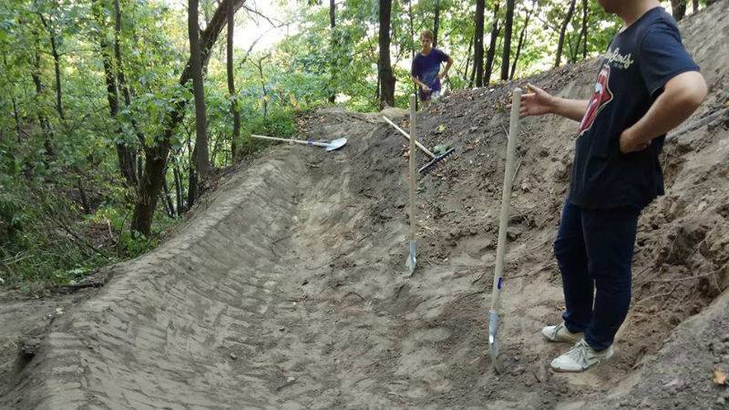 В Смородинском парке начали строить трассу для велоэкстремалов. Она начинается на вершине холма в парке, а заканчивается на ул. Кирилловской.