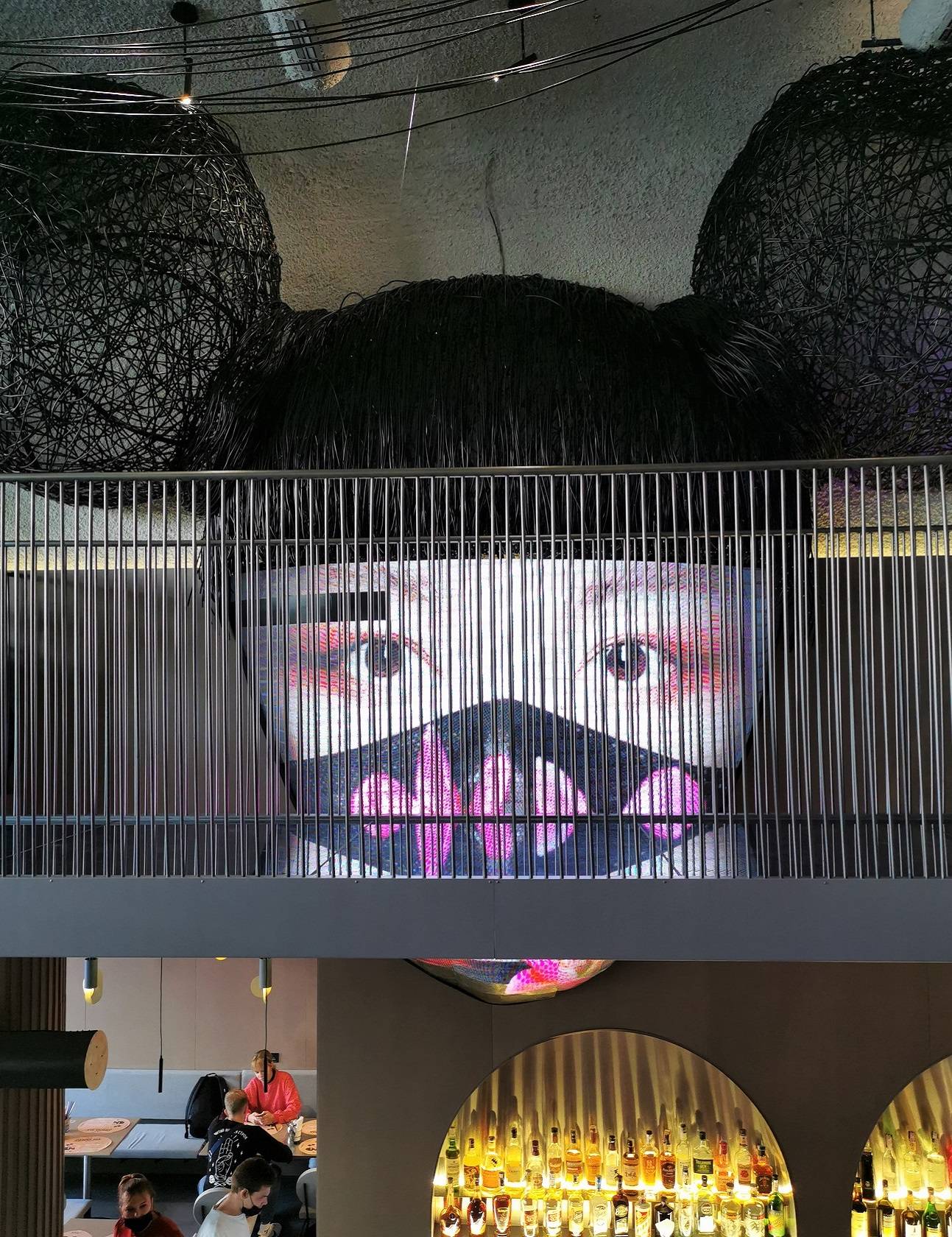 По словам дизайнеров, редакцию журнала заинтересовало визуальное решение на время пандемии - маска на лице девушки с медиа-инсталляции.